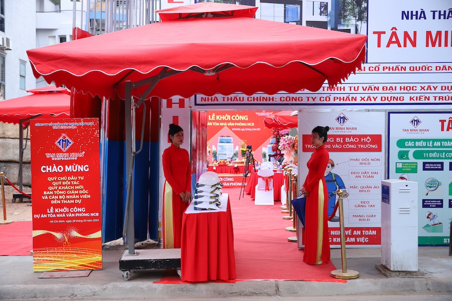 Công ty Cổ phần Xây dựng Kiến trúc Tân Minh Nhân tổ chức "Lễ Khởi Công" Tòa nhà Văn phòng Ngân hàng NCB tại địa chỉ số 26 Mai Thị Lựu, phường Đa Kao, Quận 1, TP. Hồ Chí Minh vào sáng 29/03/2024. Buổi lễ diễn ra trong không khí phấn khởi và trang trọng, tham dự buổi lễ có sự hiện diện của đại diện quý Chủ đầu tư, Ban Quản lý dự án, Tư vấn giám sát, Cán bộ nhân viên Công ty Tân Minh Nhân, nhà thầu phụ, nhà cung cấp, đội thi công.