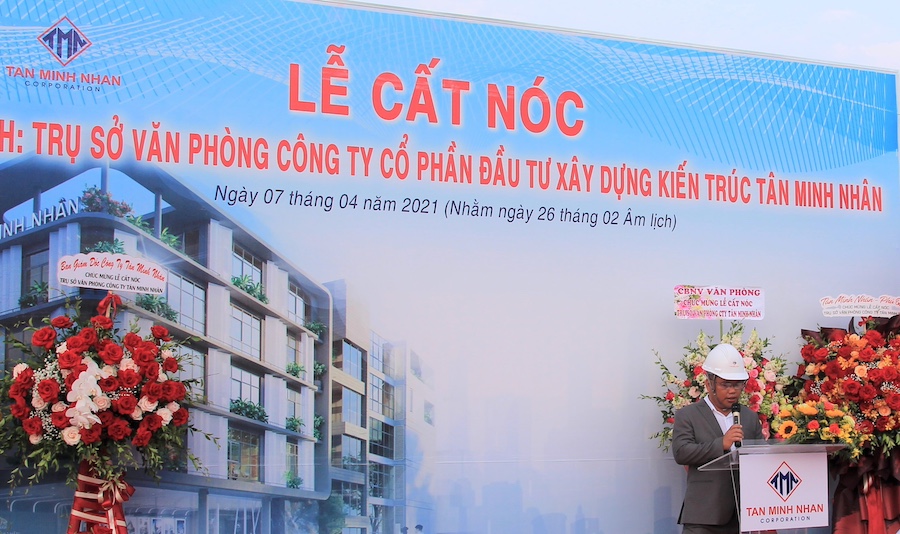 Trụ sở văn phòng công ty Tân Minh Nhân được khởi công vào ngày 20/10/2020. Sau hơn 05 tháng thi công gồm: 5 tầng nổi và 1 tầng bán hầm, với tổng diện tích sử dụng hơn 3000 m2. Ngày 07/04/2021, trụ sở văn phòng Công ty Tân Minh Nhân chính thức cất nóc, đánh dấu một cột mốc quan trọng trong suốt quá trình nỗ lực làm việc của cán bộ kỹ sư, tổ đội và các nhà thầu nhằm để đảm bảo an toàn, tiến độ và chất lượng trên công trình.