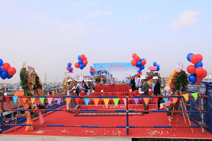 Tại buổi lễ cất nóc, Tổng Giám Đốc công ty Tân Minh Nhân đã gửi lời cảm ơn và ghi nhận quá trình làm việc nghiêm túc, hiệu quả của các bên để hoàn thành dự án theo đúng tiến độ, chất lượng.