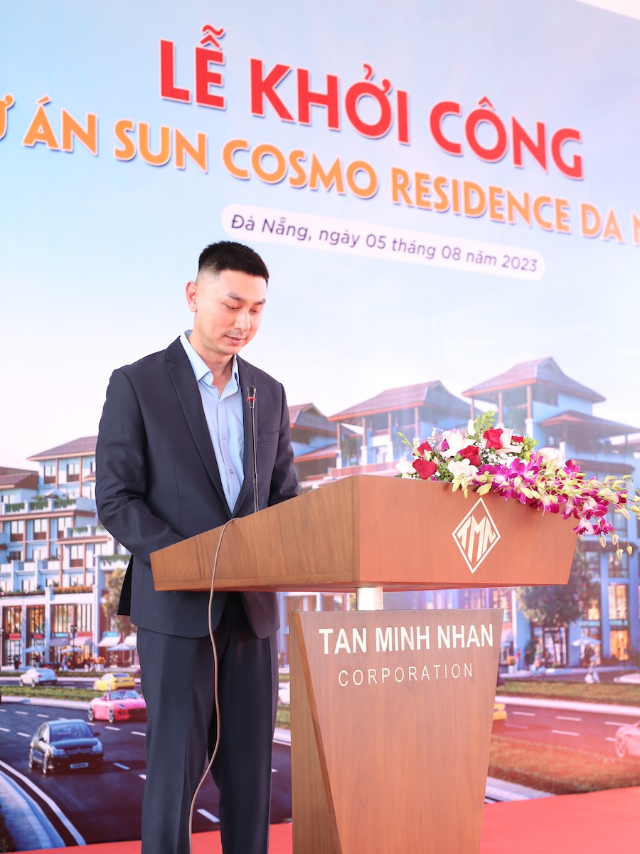 Phát biểu tại buổi lễ, ông Trương Hiếu Trung – Giám đốc Khối xây lắp, đại diện nhà thầu Tân Minh Nhân cho biết: "Tân Minh Nhân tự hào là đơn vị thi công Block B2.8 thuộc dự án Sun Cosmo Residence Đà Nẵng, đây được ví như viên ngọc cuối cùng còn sót lại giữa trung tâm thành phố Đà Nẵng sôi động. Với năng lực, kinh nghiệm, uy tín và thương hiệu của Tân Minh Nhân đã được khẳng định qua sự thành công của rất nhiều dự án lớn nhỏ, cùng ý chí quyết tâm, với tinh thần cầu tiến, các cán bộ bản lĩnh, công cụ và trang thiết bị tiên tiến, lực lượng lao động tay nghề cao, cùng những bài học được rút ra từ những dự án trước đây, Chúng tôi quyết tâm sẽ đưa dự án về đích đúng tiến độ, đảm bảo thi công an toàn, chất lượng. Sự thành công của dự án là minh chứng cho mối quan hệ hợp tác lâu dài giữa Tập đoàn Sun Group và Tân Minh Nhân."