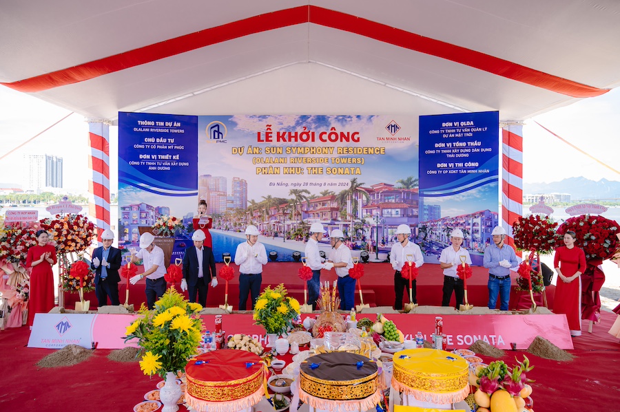 [Đà Nẵng, ngày 28 tháng 8 năm 2024] Trong không khí trang trọng và hứng khởi, "Lễ khởi công dự án Sun Symphony Residence Đà Nẵng" đã diễn ra tại Đường Trần Hưng Đạo – Lê Văn Duyệt, phường Nại Hiên Đông, quận Sơn Trà, thành phố Đà Nẵng. Tham dự buổi lễ có sự hiện diện đông đủ của đại diện từ Chủ đầu tư Tập đoàn Sun Group, Ban quản lý dự án, Ban Lãnh đạo Công ty Tân Minh Nhân cùng toàn thể Ban chỉ huy công trình.