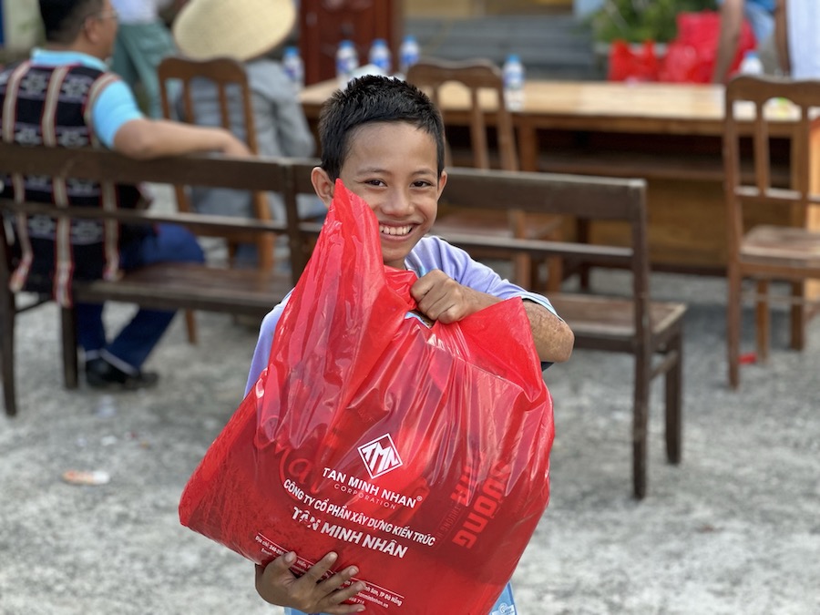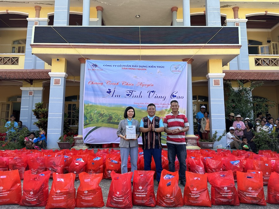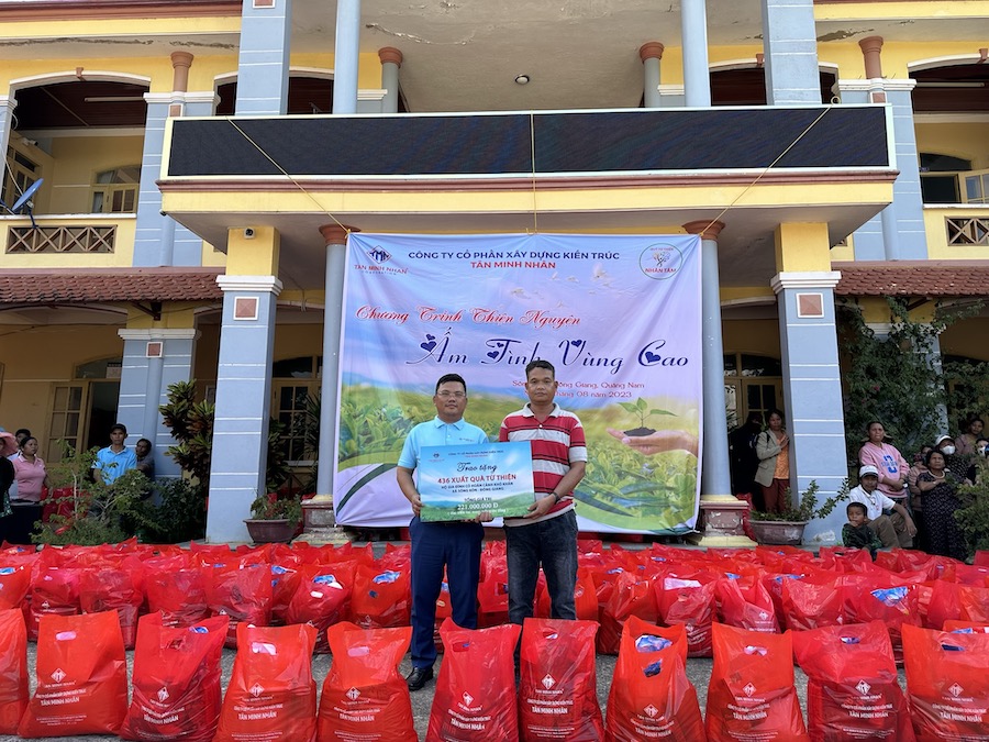 Từ việc tìm hiểu qua các kênh thông tin và đại diện chính quyền địa phương để hiểu hơn về cộng đồng nơi đây. Ngày 17/8/2023, Quỹ từ thiện Nhân Tâm – Công ty Tân Minh Nhân đã trao tặng cho 436 hộ nghèo những nhu yếu phẩm thiết yếu mà người dân cần hằng ngày với tổng giá trị là 221 triệu đồng, mỗi xuất quà bao gồm: Gạo, hạt nêm, dầu ăn, nước mắm, đường, sữa, bánh Trung thu.