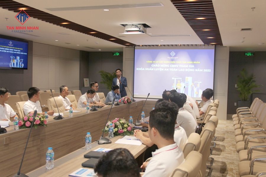 Sáng ngày 08/05/2022, Công ty Cổ phần Xây dựng Kiến trúc Tân Minh Nhân đã triển khai tổ chức chương trình đào tạo HSE cho hơn 60 Cán bộ nhân viên chia thành 2 đợt là các Quản lý dự án, Chỉ huy trưởng, Chỉ huy phó, Giám sát chính, Giám sát, An toàn lao động, Trưởng các phòng ban và các nhân viên chuyên môn khác.